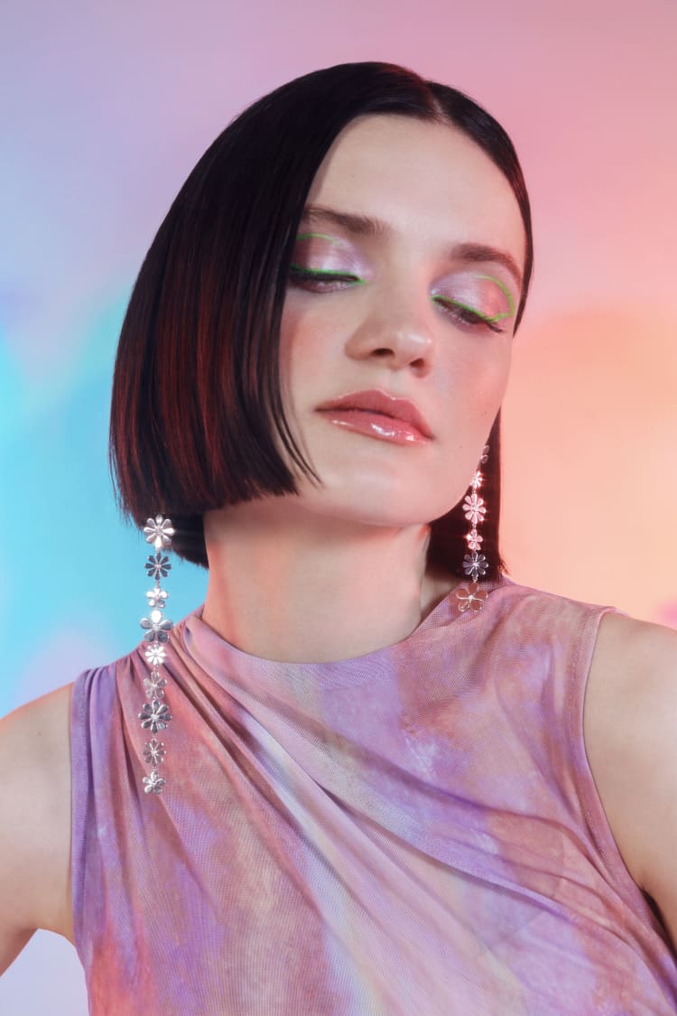 Spectacular flower-shaped jewelry; chokers, midi rings, rings, ear cuffs, and earrings created with high-end recycled materials plated in 18k gold and silver.