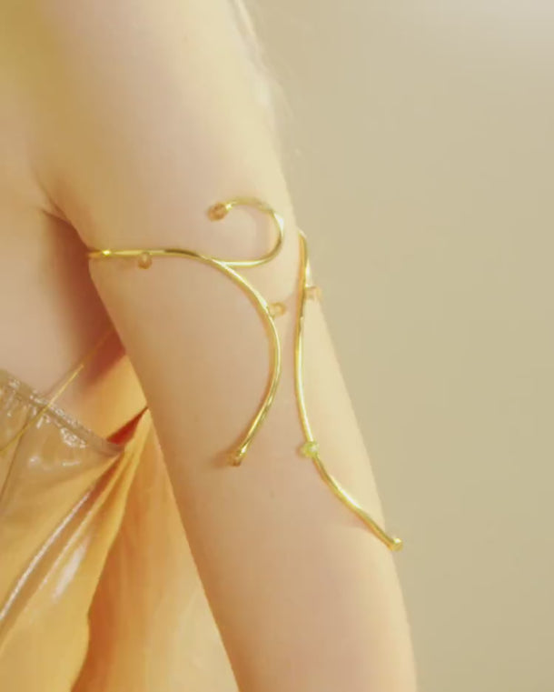 Gold Arm Cuff with Opal and Topaz Crystals