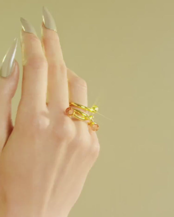 Gold Asymmetric Ring with Opal and Topaz Crystals