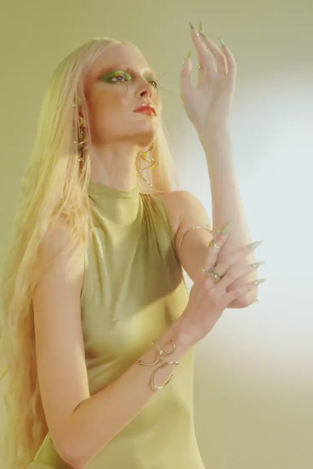 Jewellery that flows and moves like the roots of the earth adorned with crystal stones in earthy browns and vibrant greens that reflect the wild beauty of the forest. Let these bold, nature-inspired pieces become a part of you, integrating seamlessly with your style.