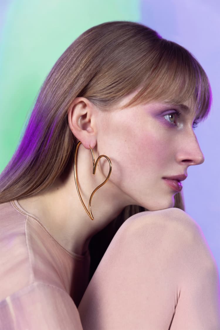 ゴールドビッグハートフープピアス