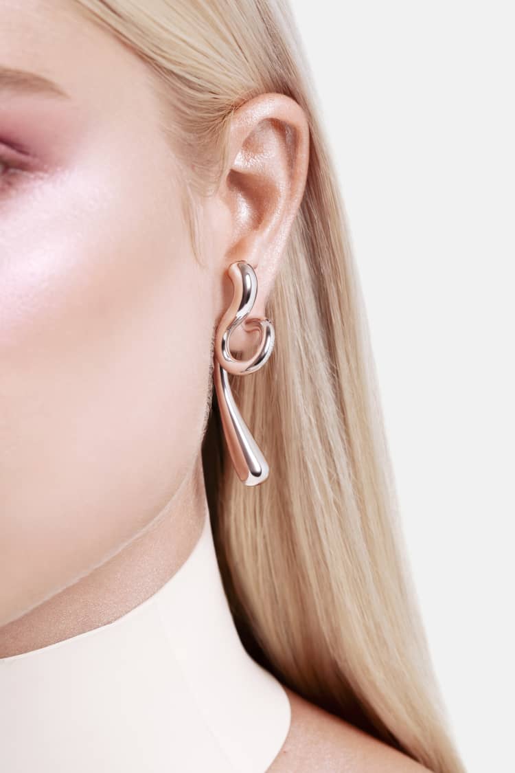 大きなツイスト雫イヤリング – シルバー