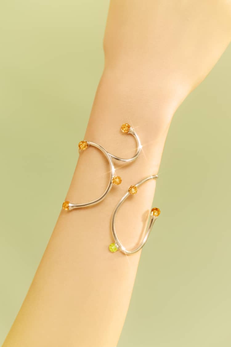 トパーズとオパールクリスタルをあしらったシルバー製ボールドバングルブレスレット