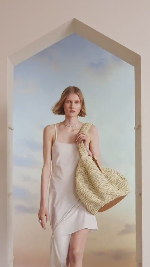 Mediterranean accessories made with natural raffia are a summer staple. Because of their freshness, lightness and versatility, they are ideal for moving between the beach and the city. The hand-woven natural raffia basket with vegetable-dyed leather details can be used in different ways, adapting it to your summer routines.
