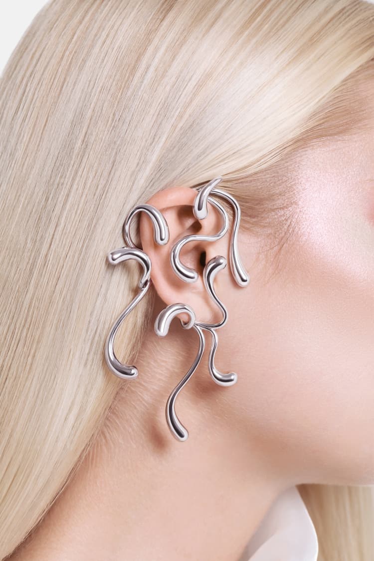 Full Ear Multi-Drop Ear Cuff - silver